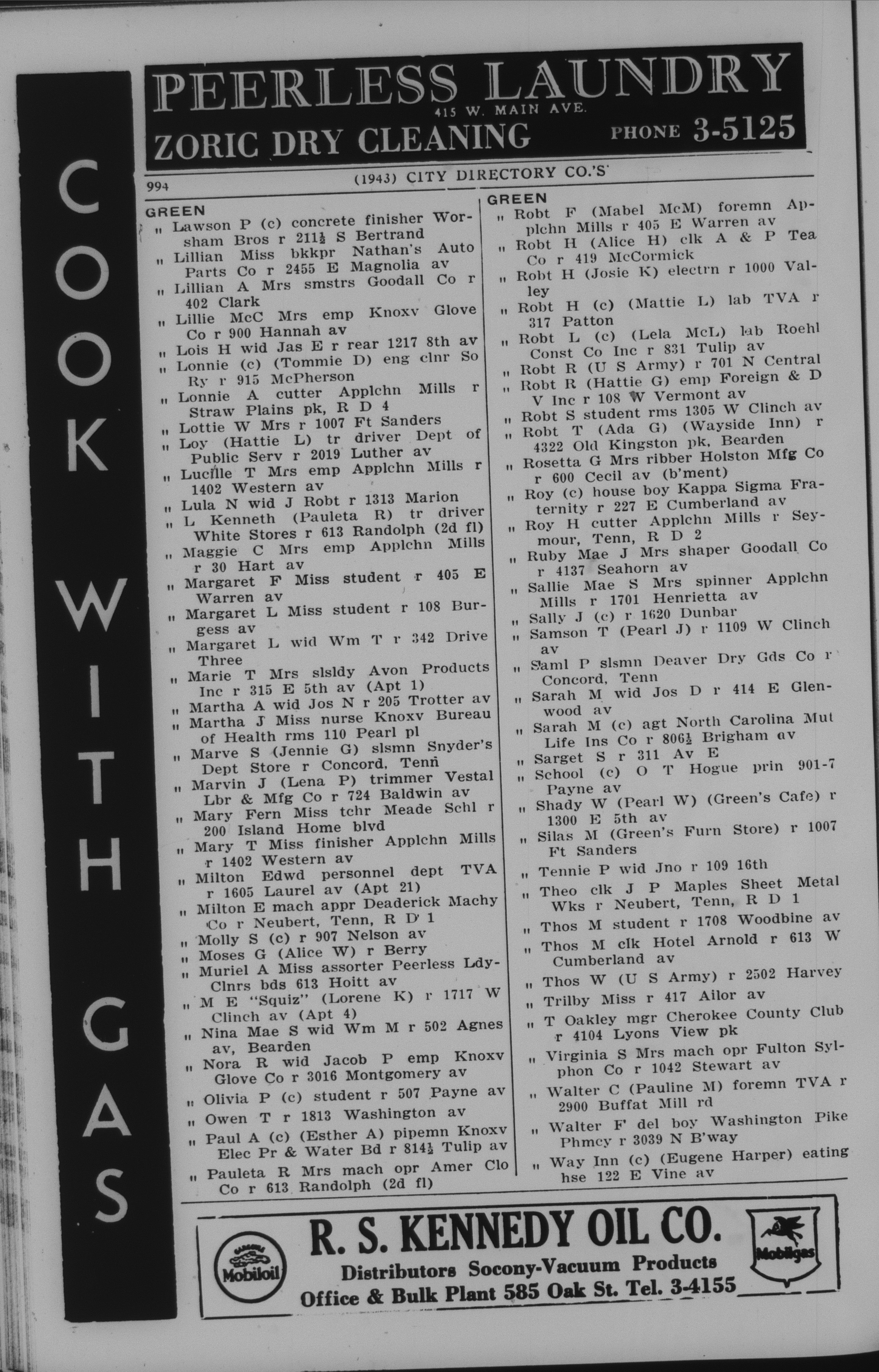 1943 Knoxville City Directory, page 993, Green surname