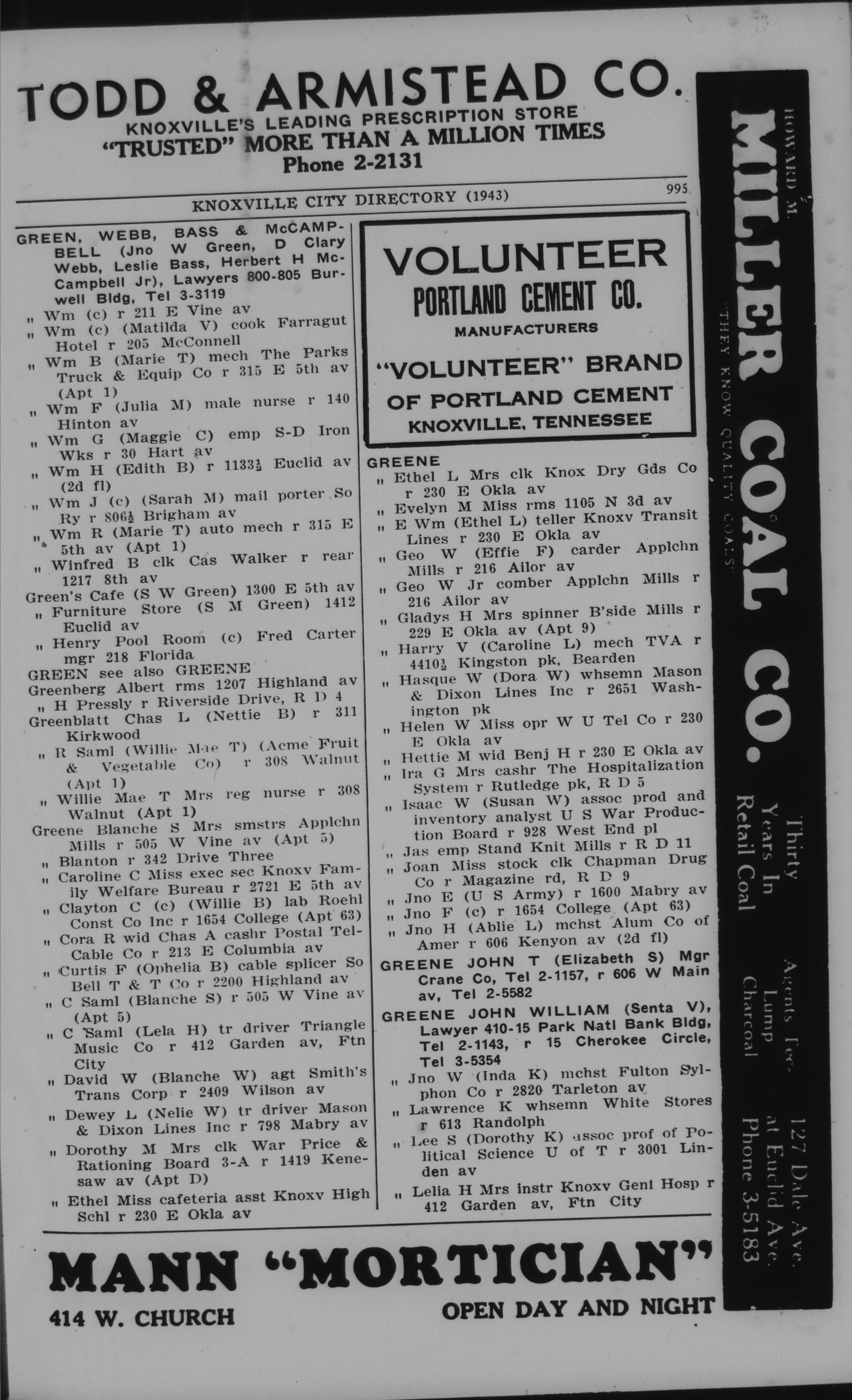 1943, City Directory, Knoxville, Tennessee, page 995Green surname |