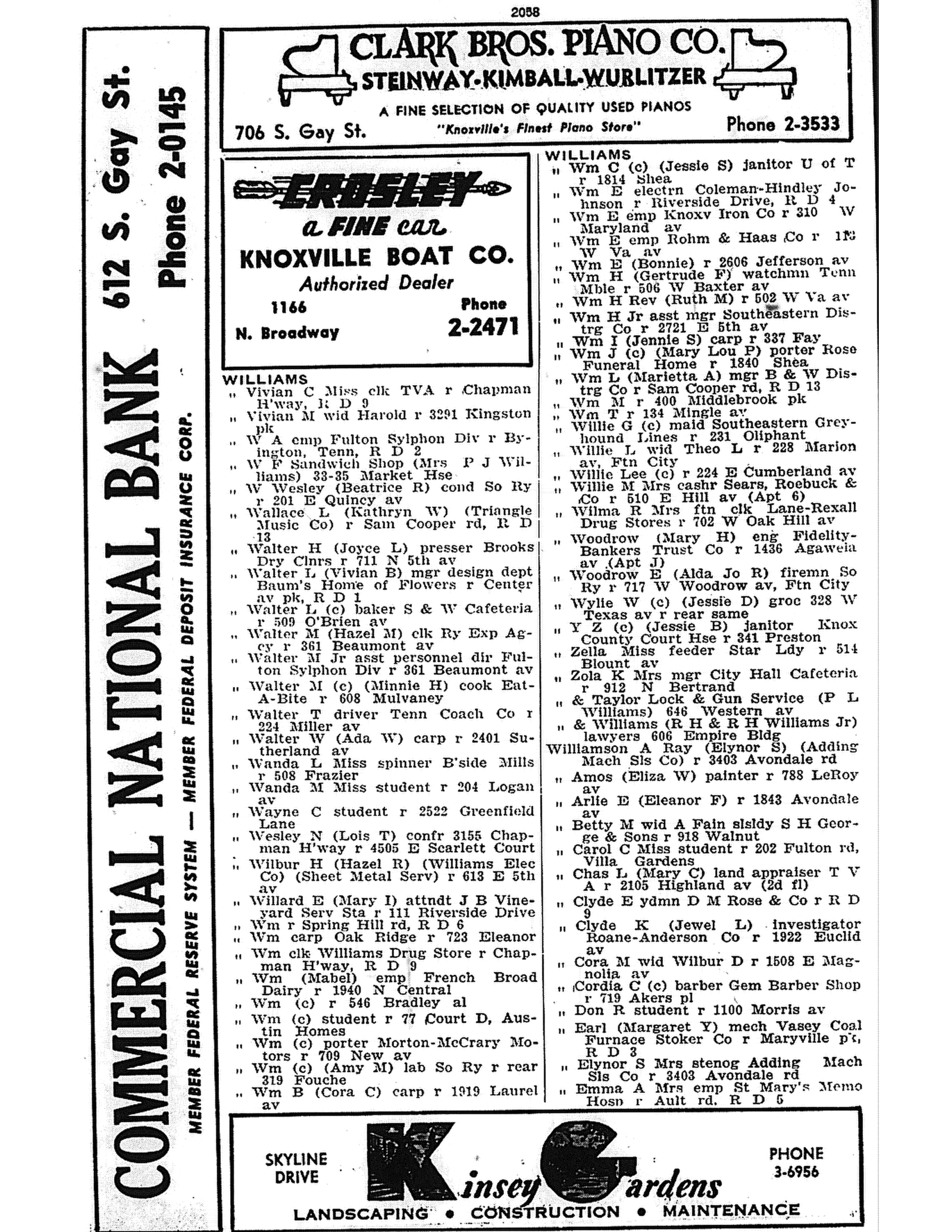 1948-1949 Knoxville City Directory, page 2059, Williamson surname