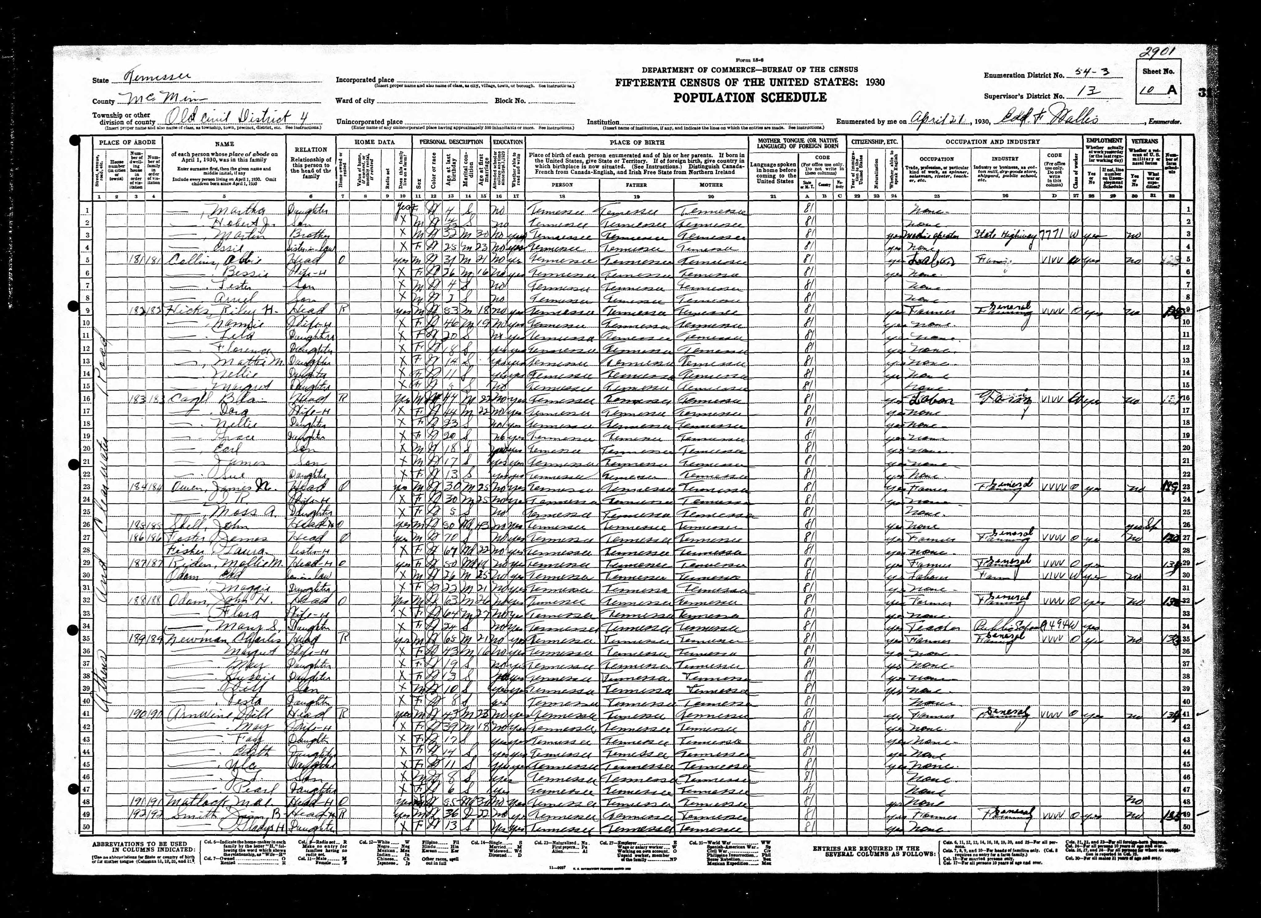 1930 U.S. Census, McMinn County, TennesseeEnumeration District 54-3, Dist. 4, page 31a |