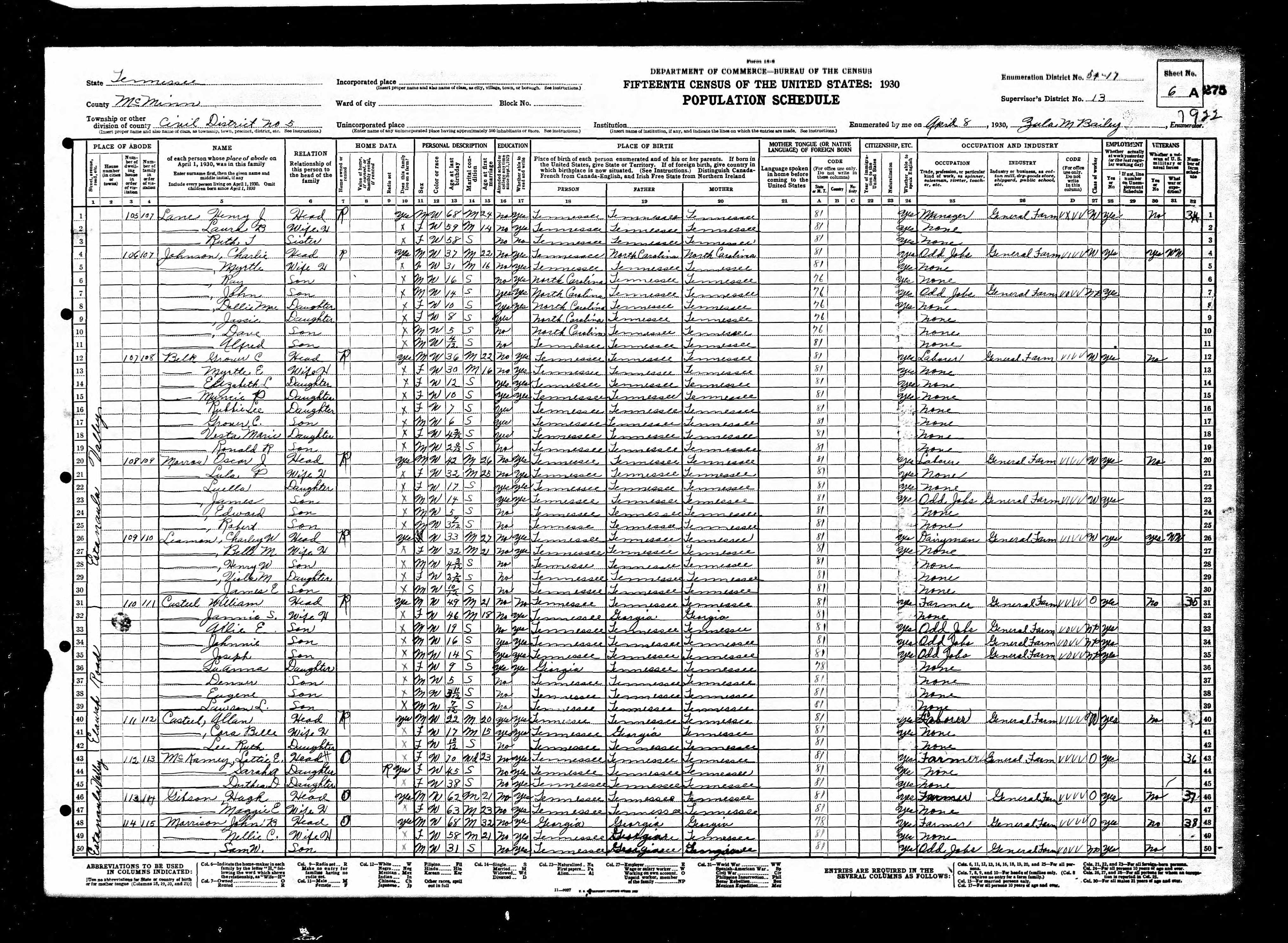 1930 U.S. Census, McMinn County, TennesseeEnumeration District 54-13, Dist. 4, page 288b |
