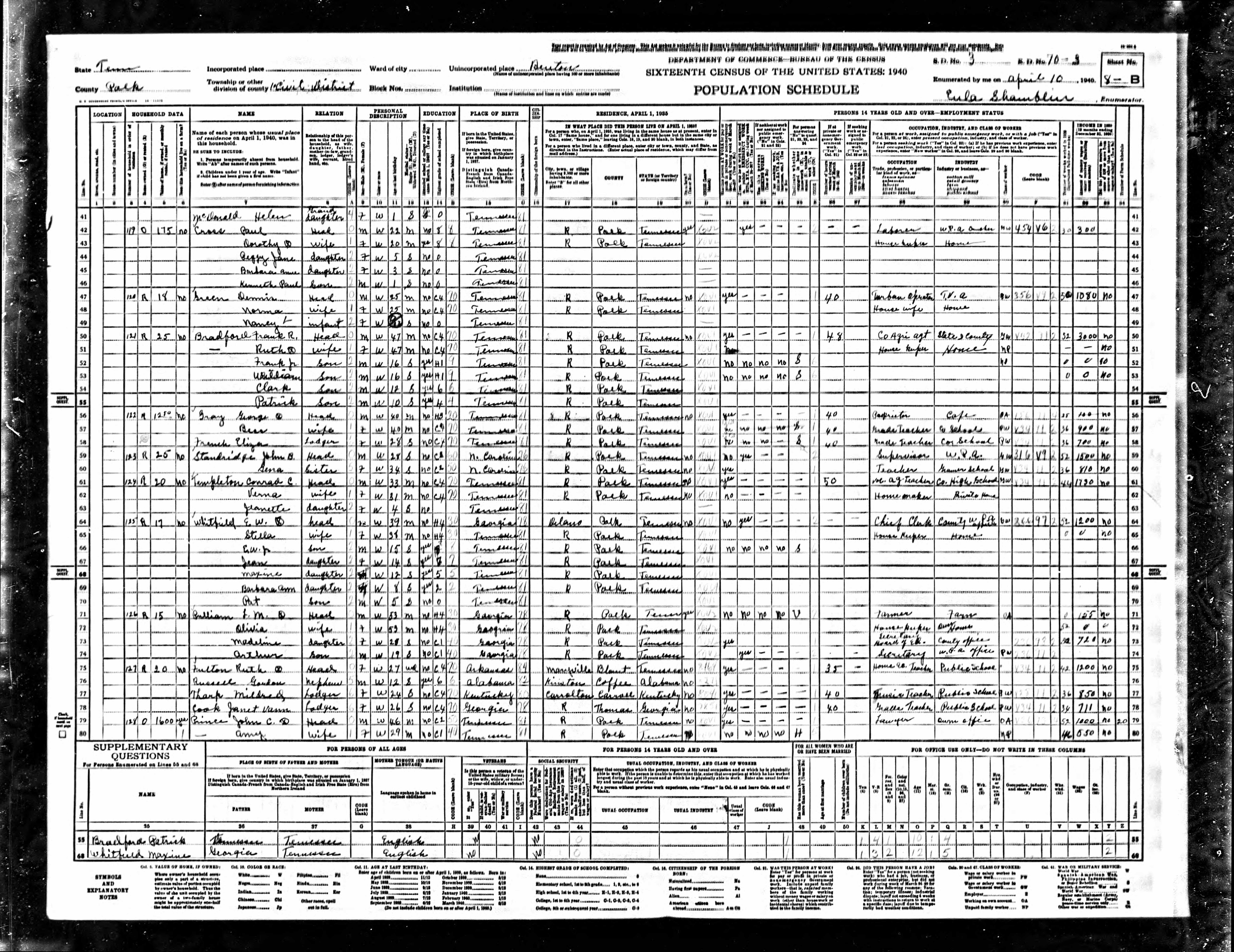 1940, Dist. 1, Enumeration District 70-3, Polk County, Tennessee, p.41b |