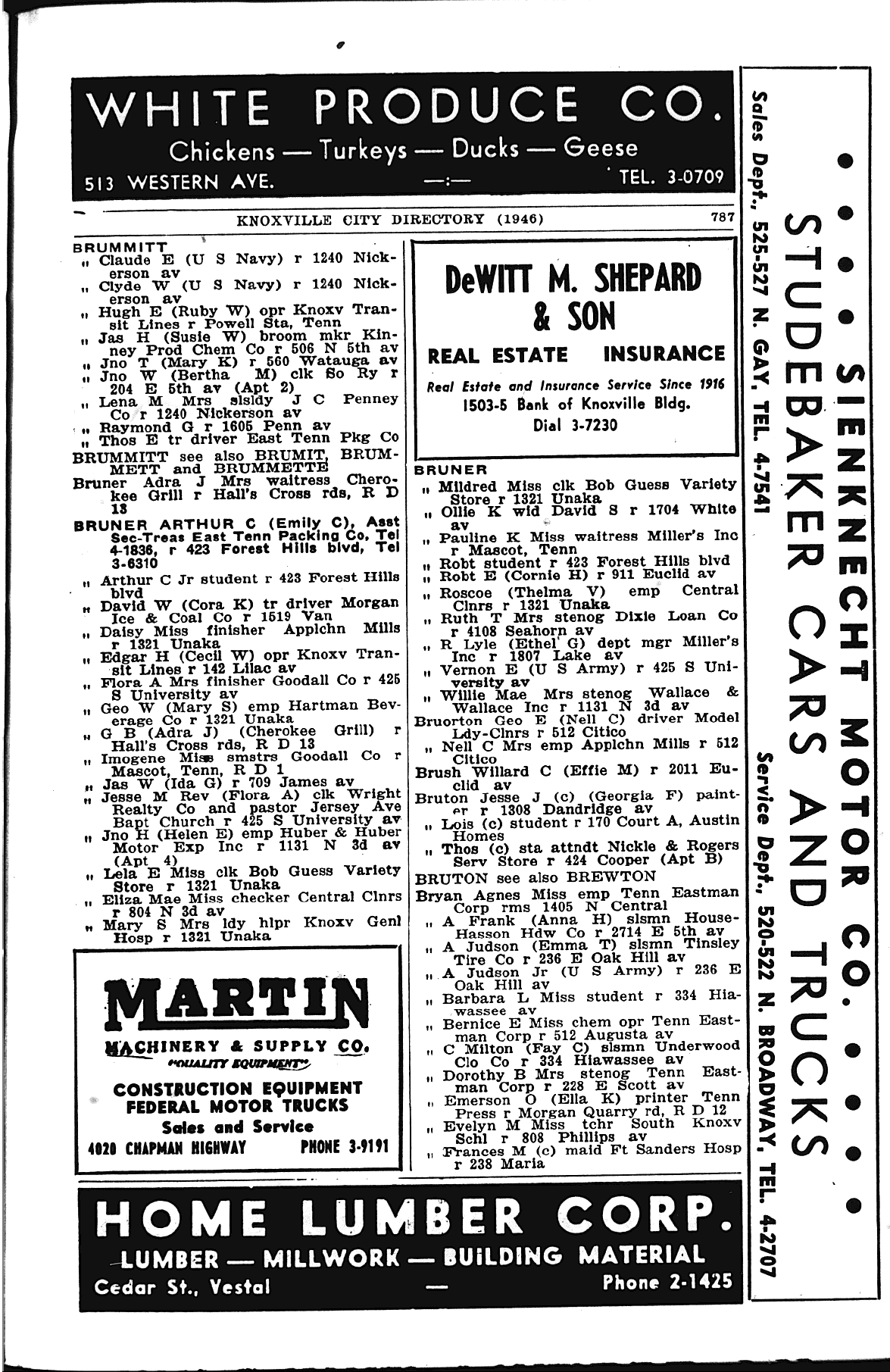 | 1948 City Directory | 1948/49; Knox County, Tennessee. Bryan Emmert O asst supt Vestal Lbr & Mfg Co r Morgan Quarry Rd RD 12.37 |