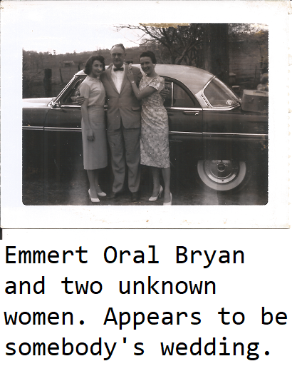 | Burial | 14 November 1978; Greenwood Cemetery, Knoxville, Knox County, Tennessee. Grave marker: Emmert O. Bryan, Nov. 1, 1898 - Nov. 12, 1978, same marker as Ella N. Bryan. GPS: 36.030835,-83.916012.41,2,21 |