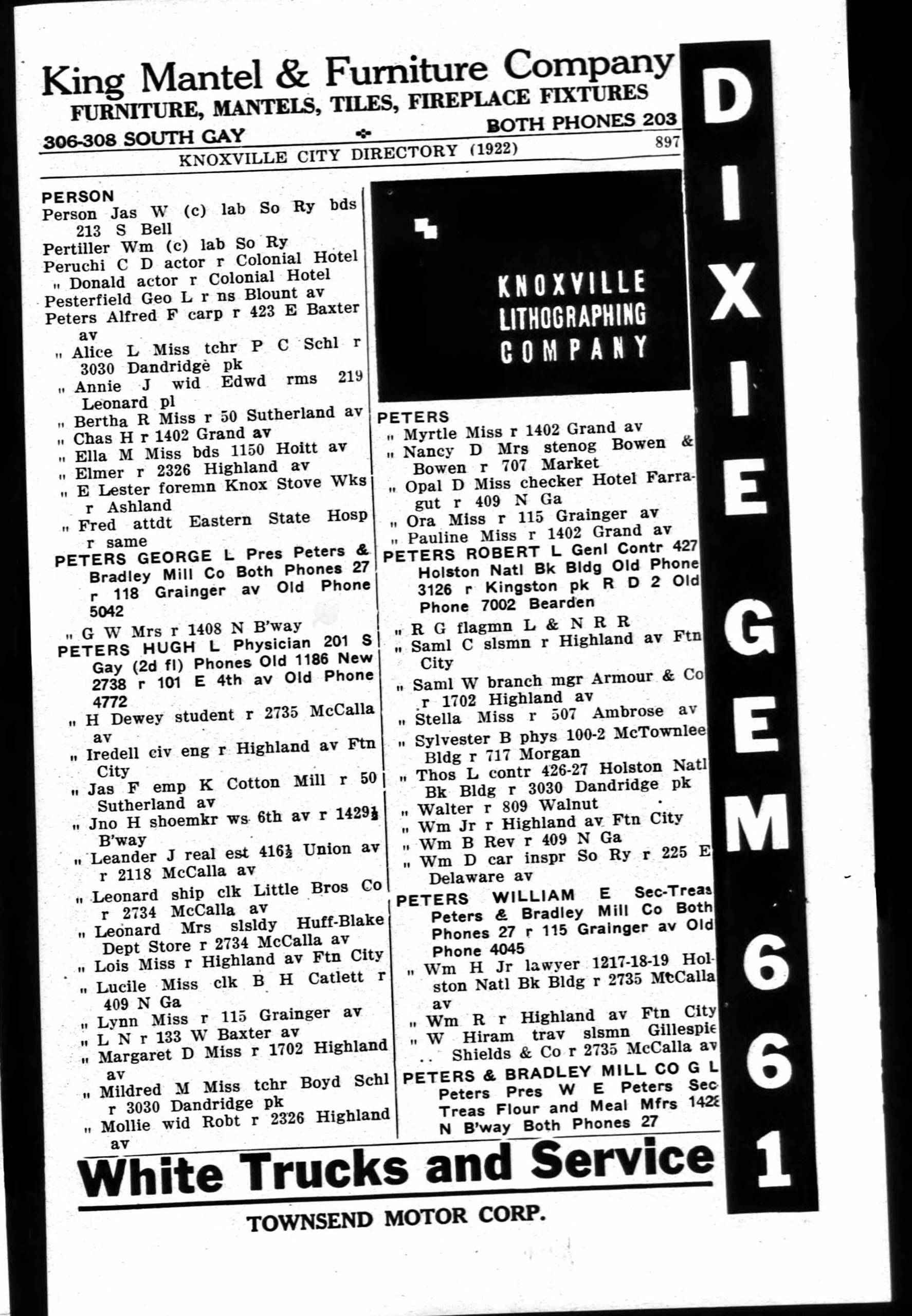 Peters Alice L Miss, tchr P C High Schl, r 3030 Dandridge pk
