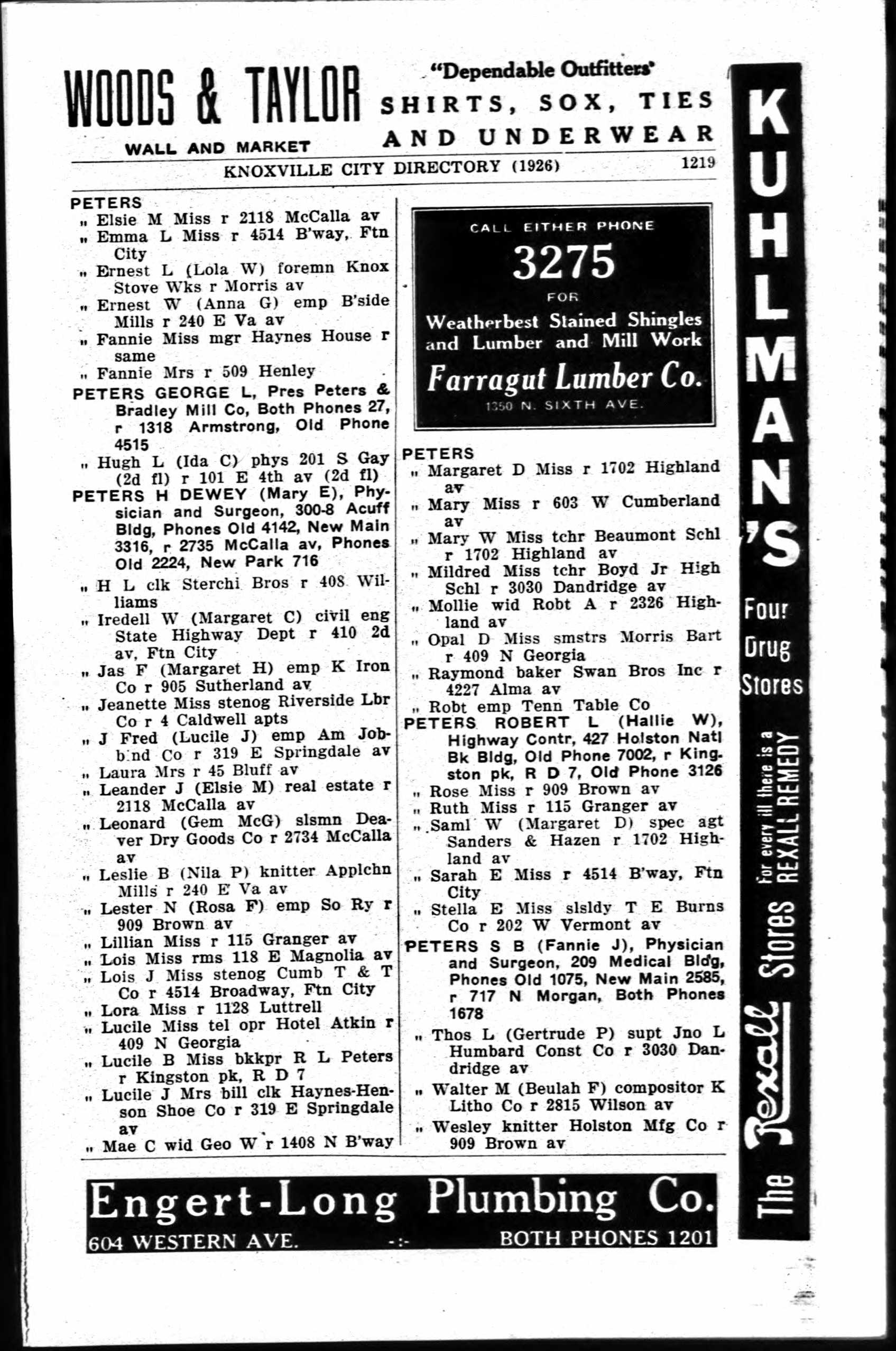 Peters Albert S, r 309 8th