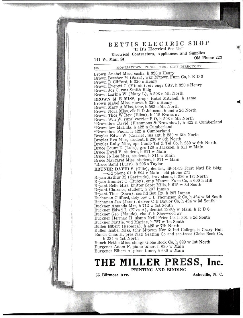 - [S1994] City Directory: Morristown, Tennessee, 1922, page 108.