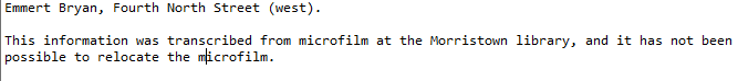 This information was transcribed from microfilm at the Morristown library, and it has not been possible to relocate the microfilm.