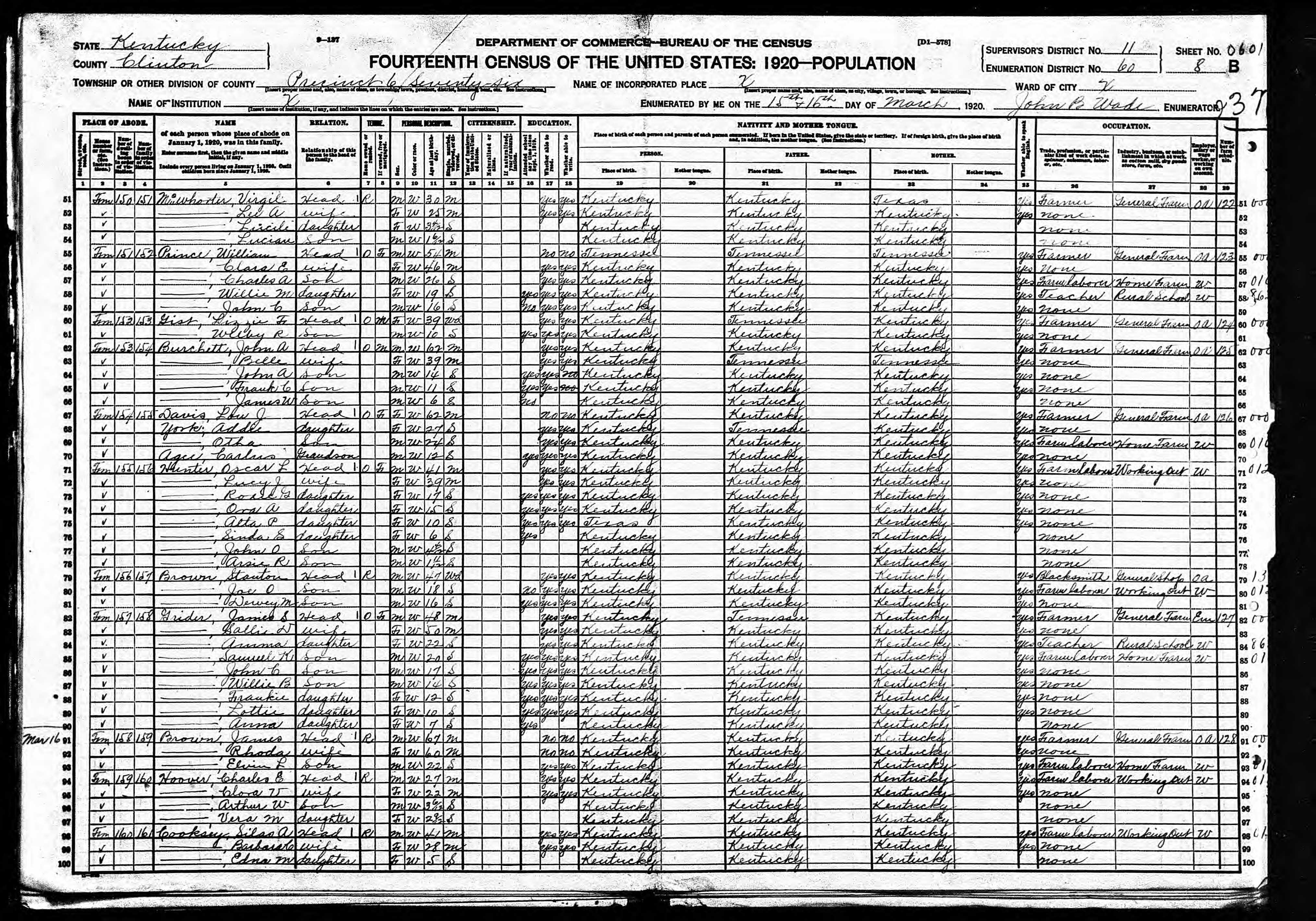 Enumeration District 60, Precinct 6 Seventy-six, Clinton County, Kentucky, 15 & 16 Mar 1920