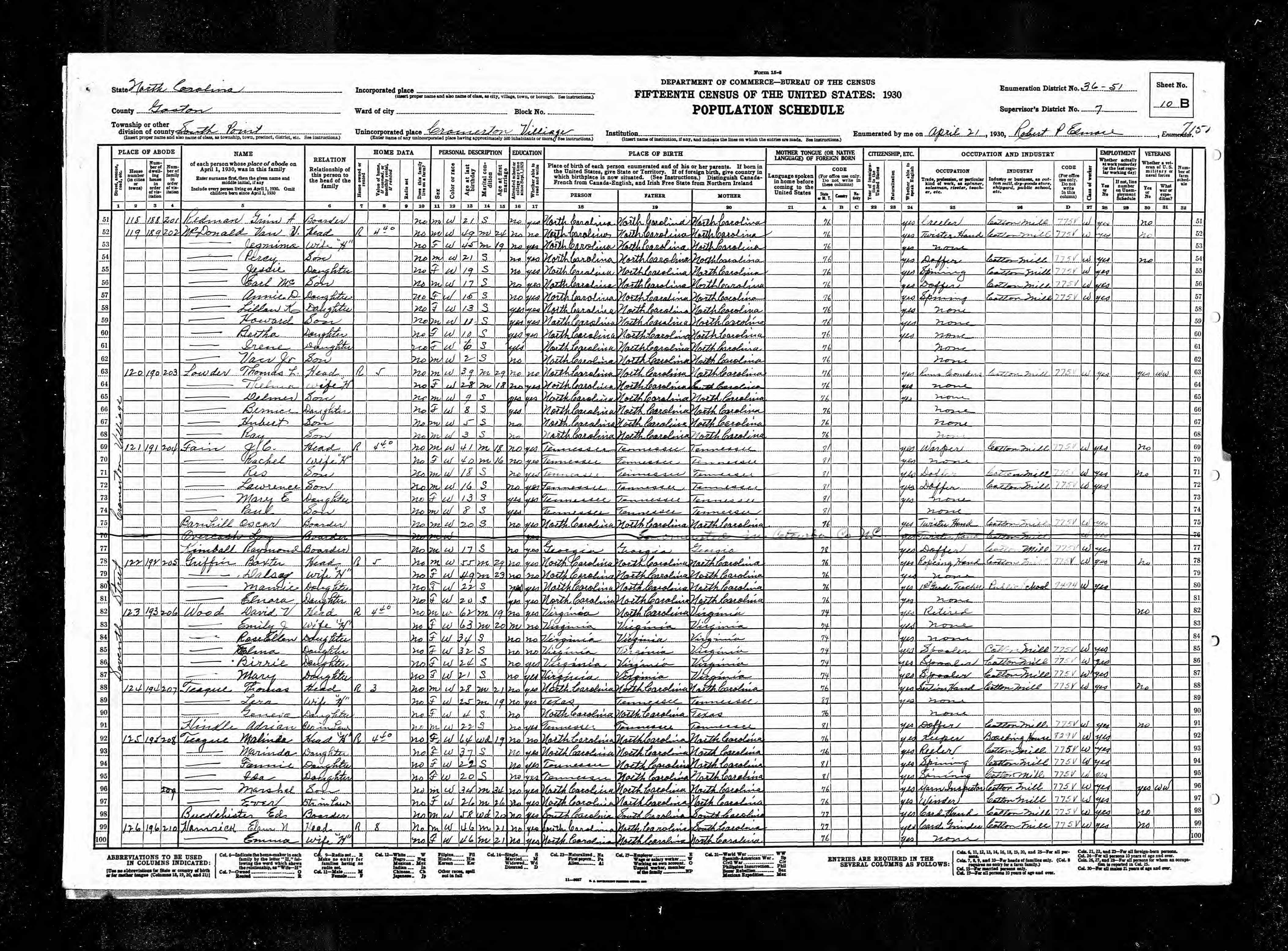 1930, South Point, Enumeration District 36-51, Gaston County, North Carolina, page 256b |