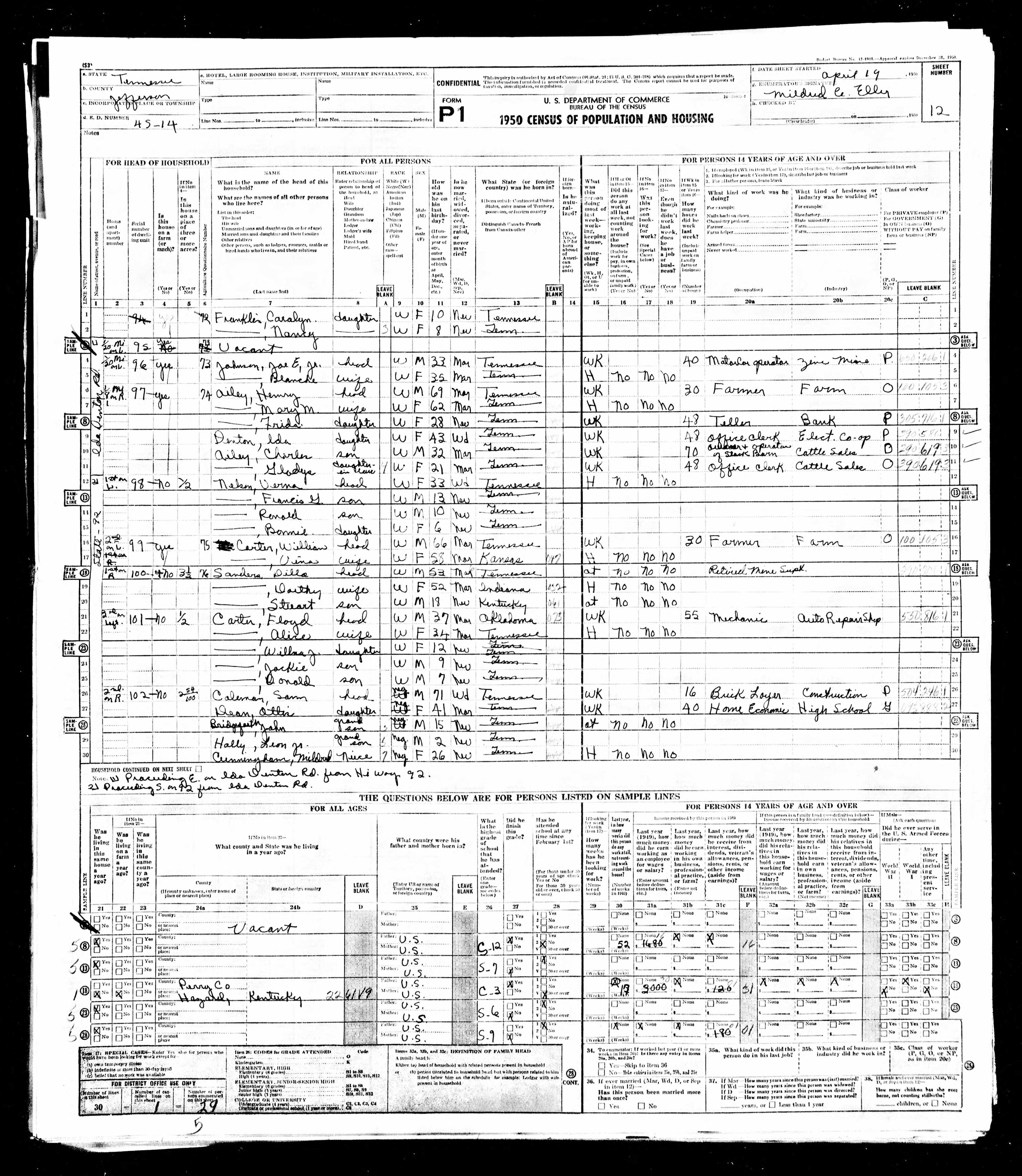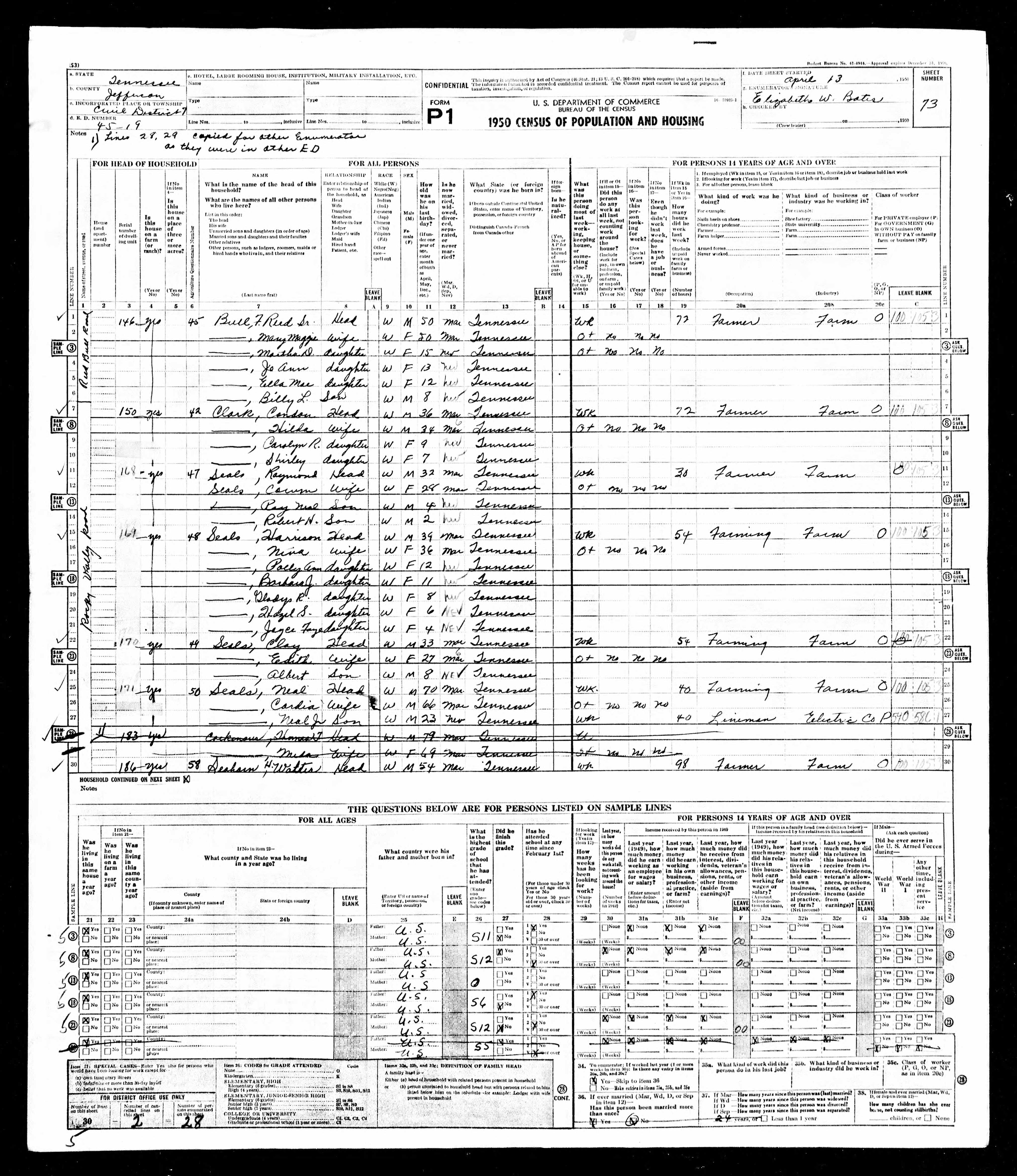 1950 U.S. Census, Enumeration District 45-19, Jefferson County, Tennessee, Dist. 7, sheet 73 |