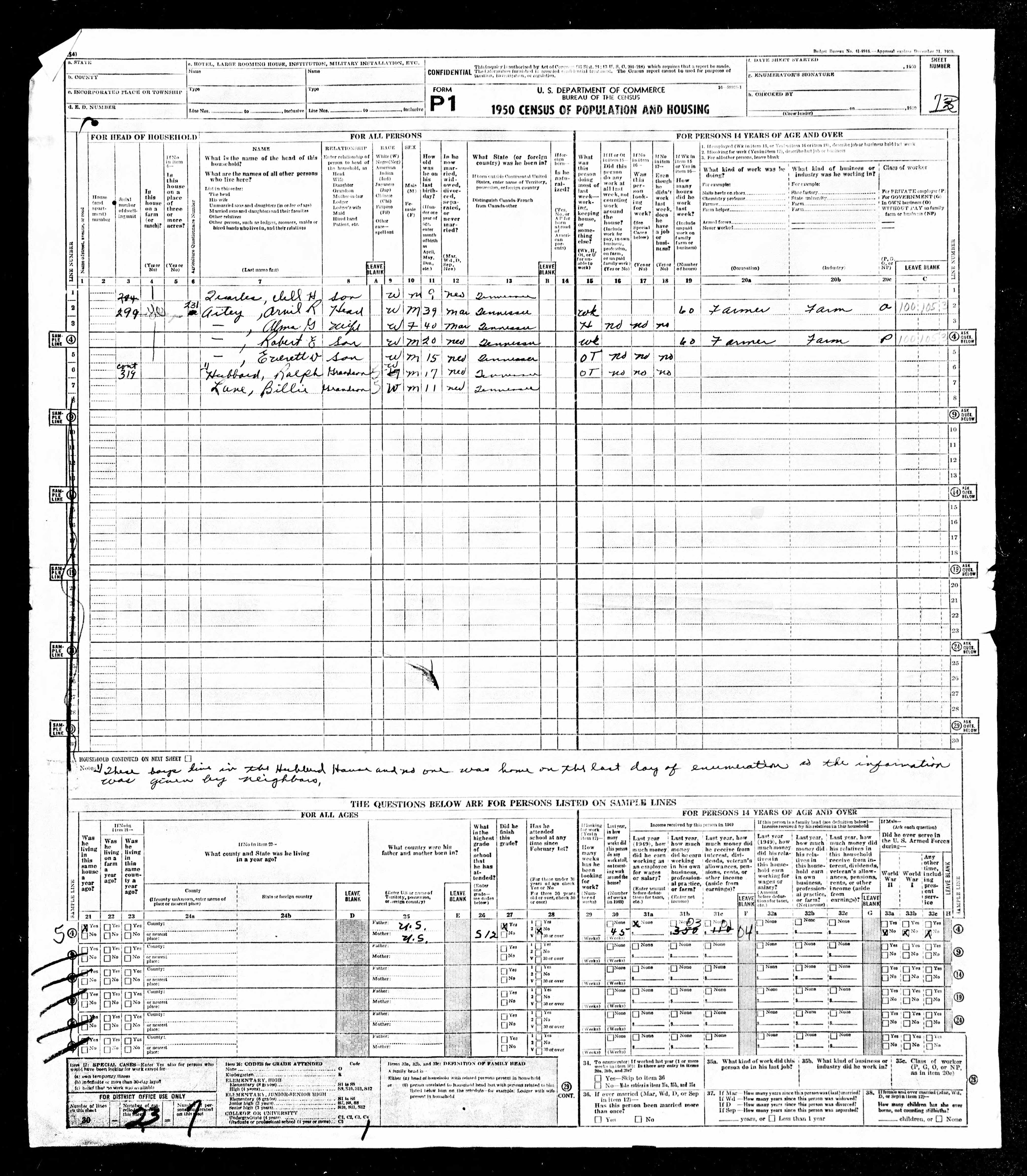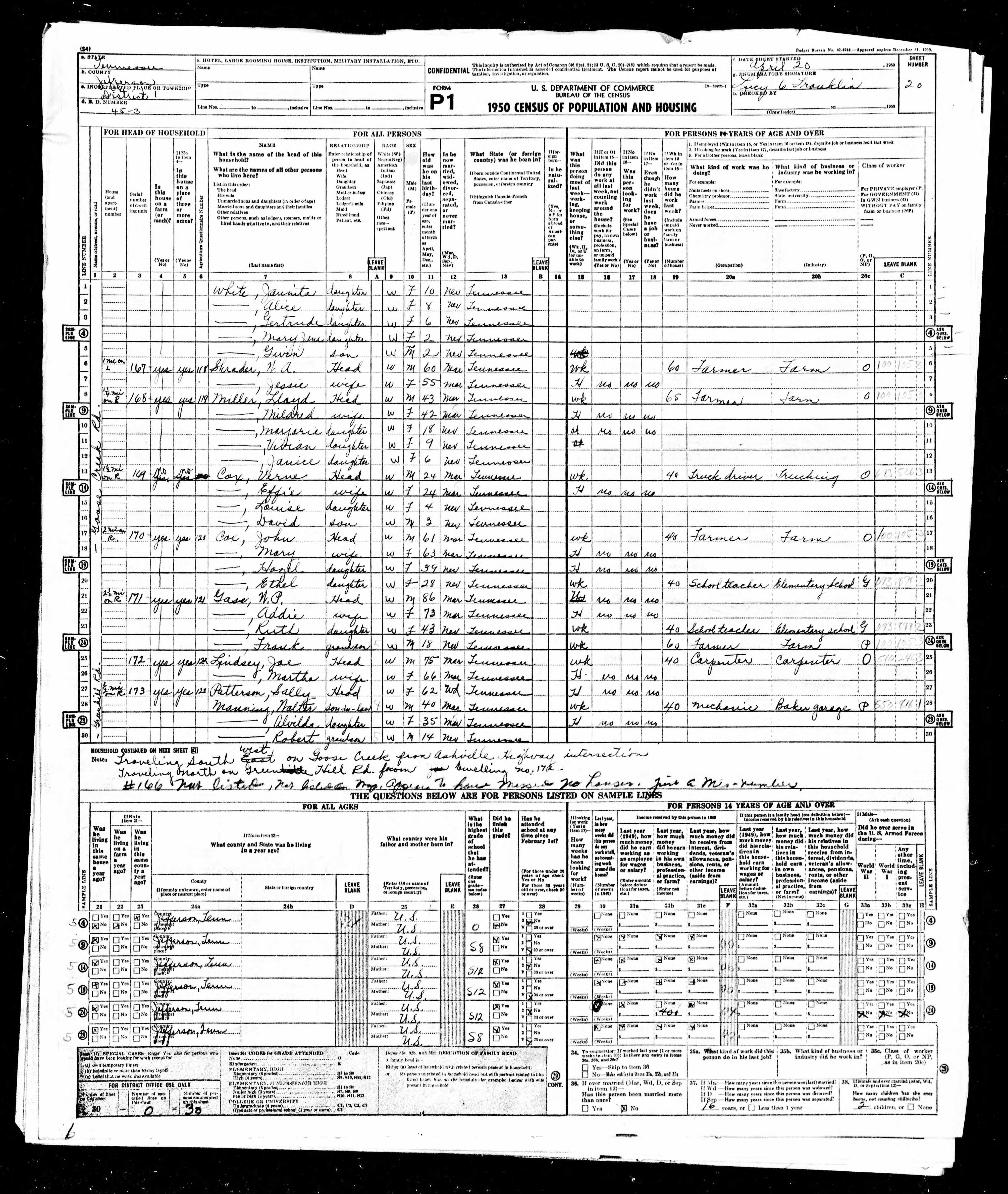 1950 U.S. Census, Enumeration District 45-3, Jefferson County, Tennessee, Dist. 1, sheet 20 |