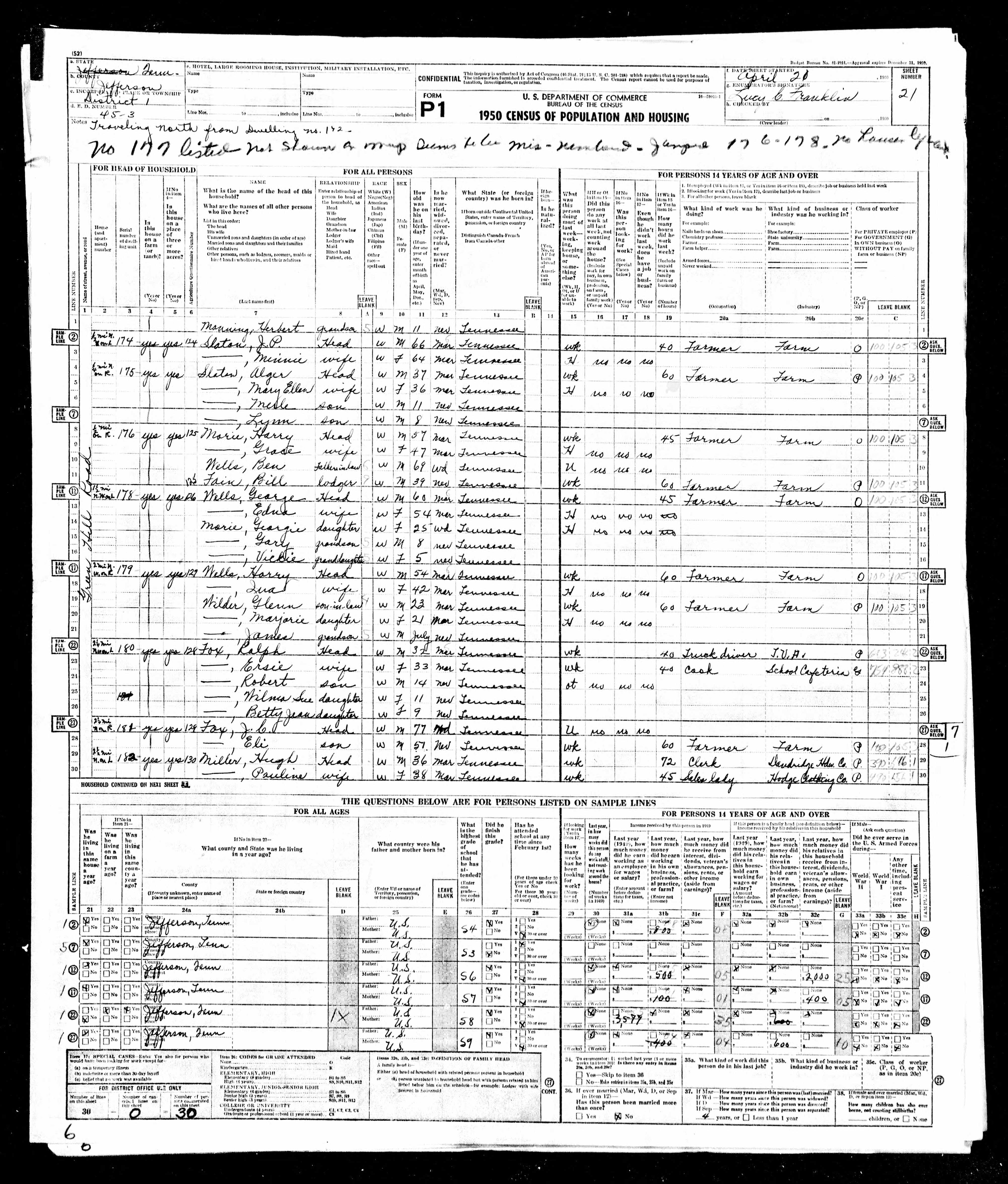 1950 U.S. Census, Enumeration District 45-3, Jefferson County, Tennessee, Dist. 1, sheet 21 |