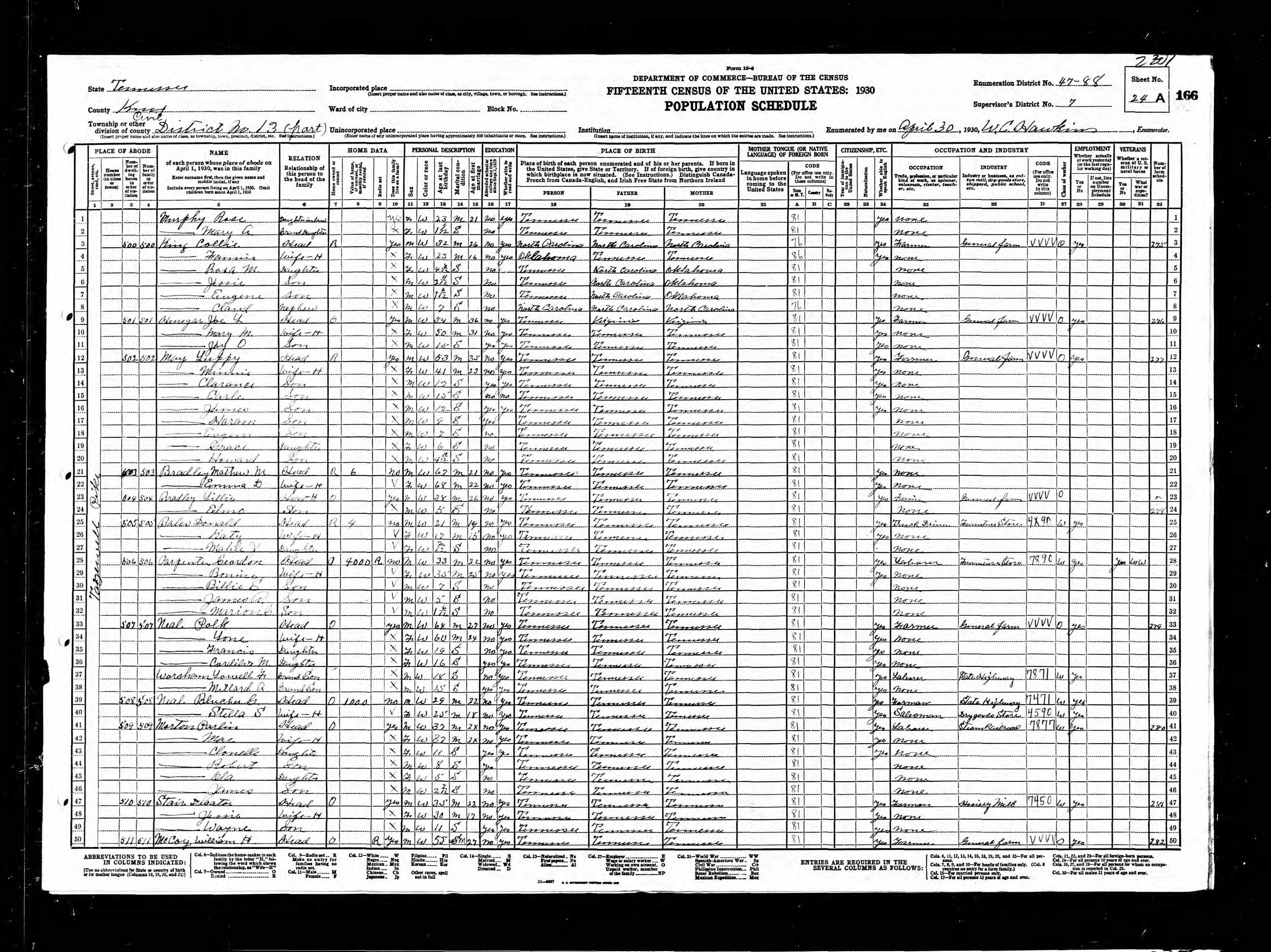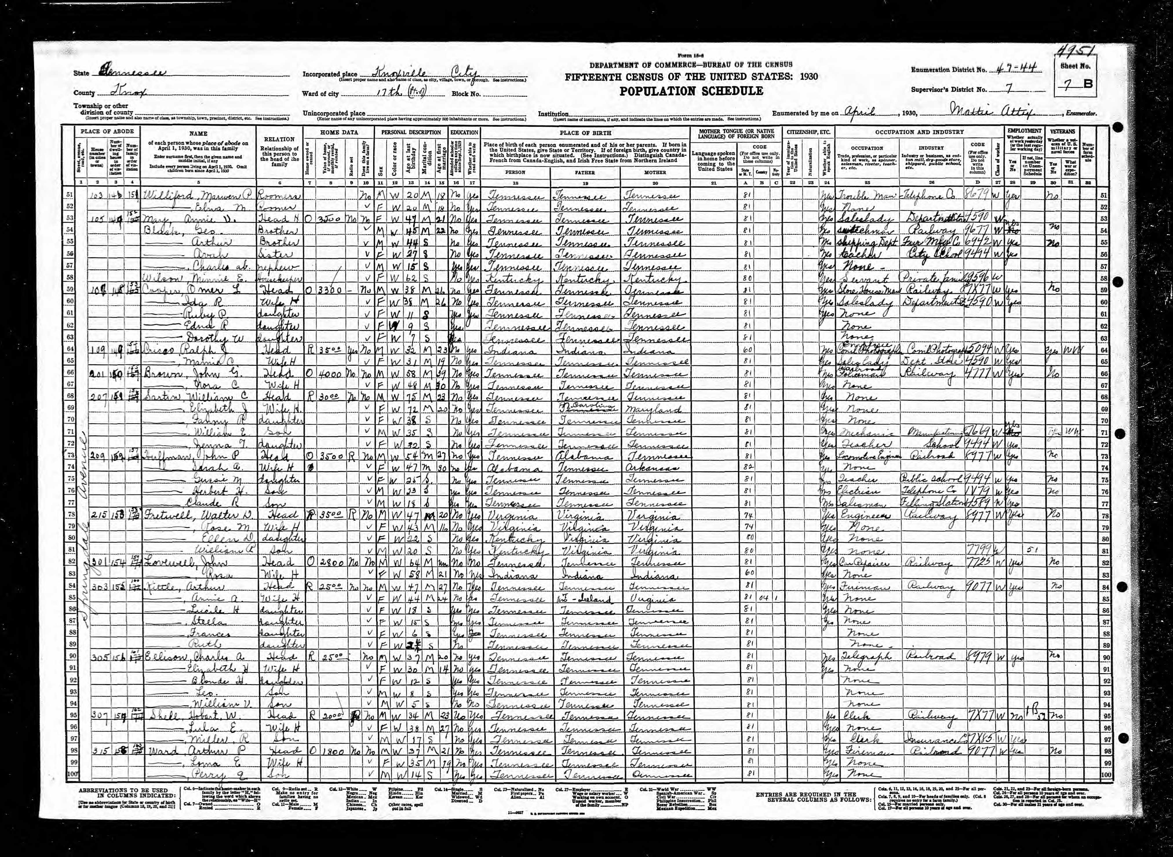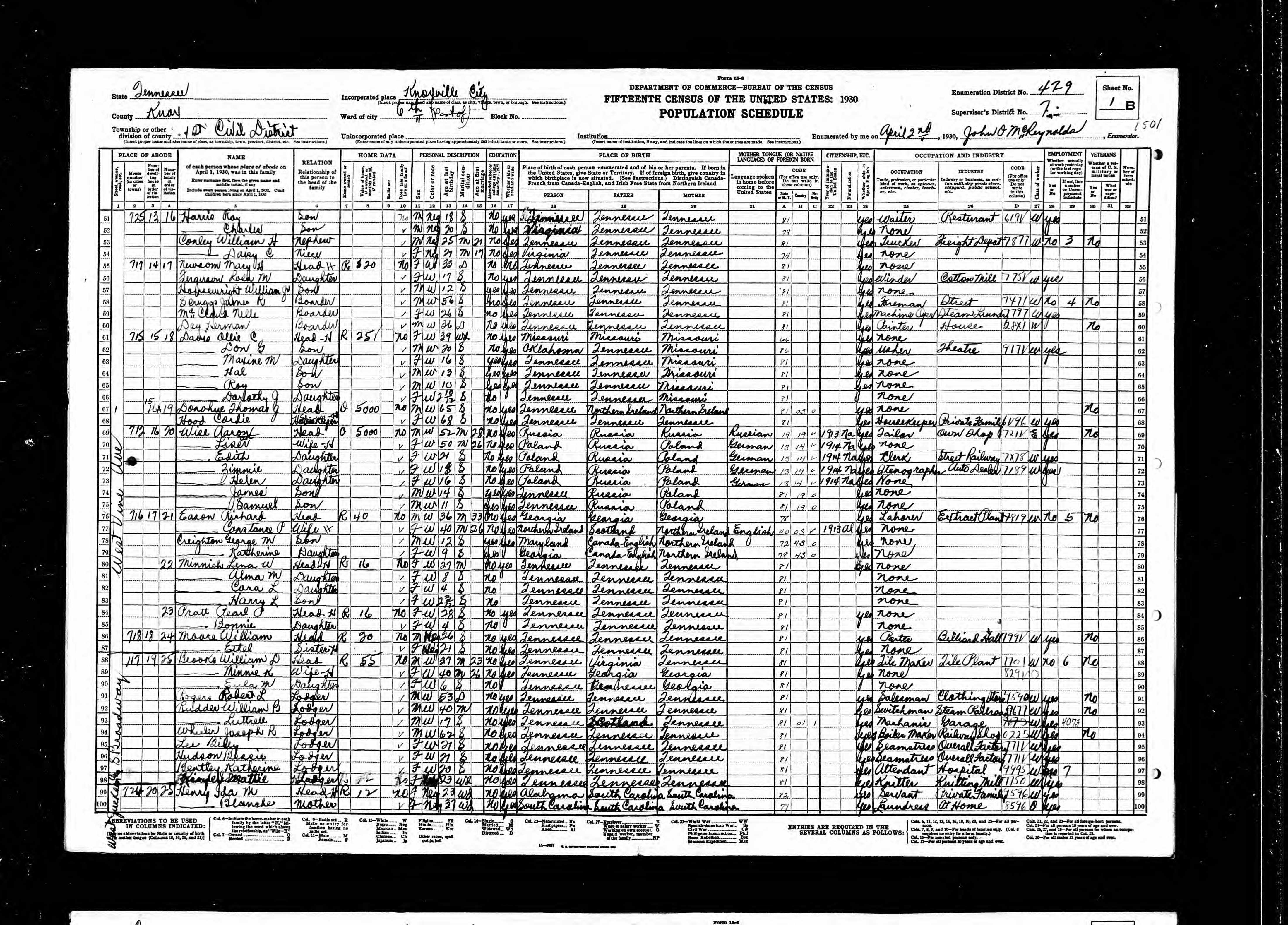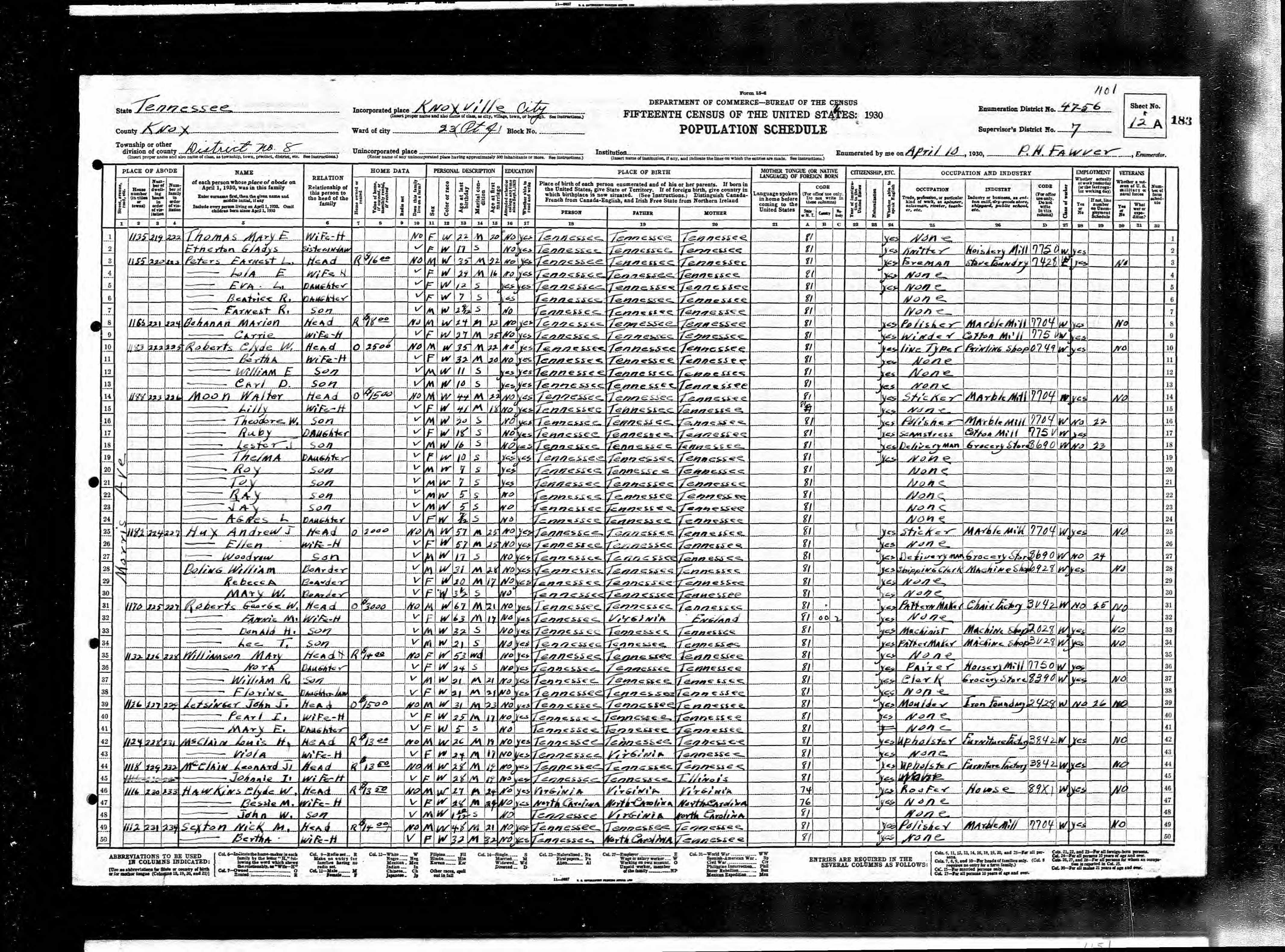 Enumeration District 47-13, Knoxville City, Knox County, Tennessee, 16 Apr 1930