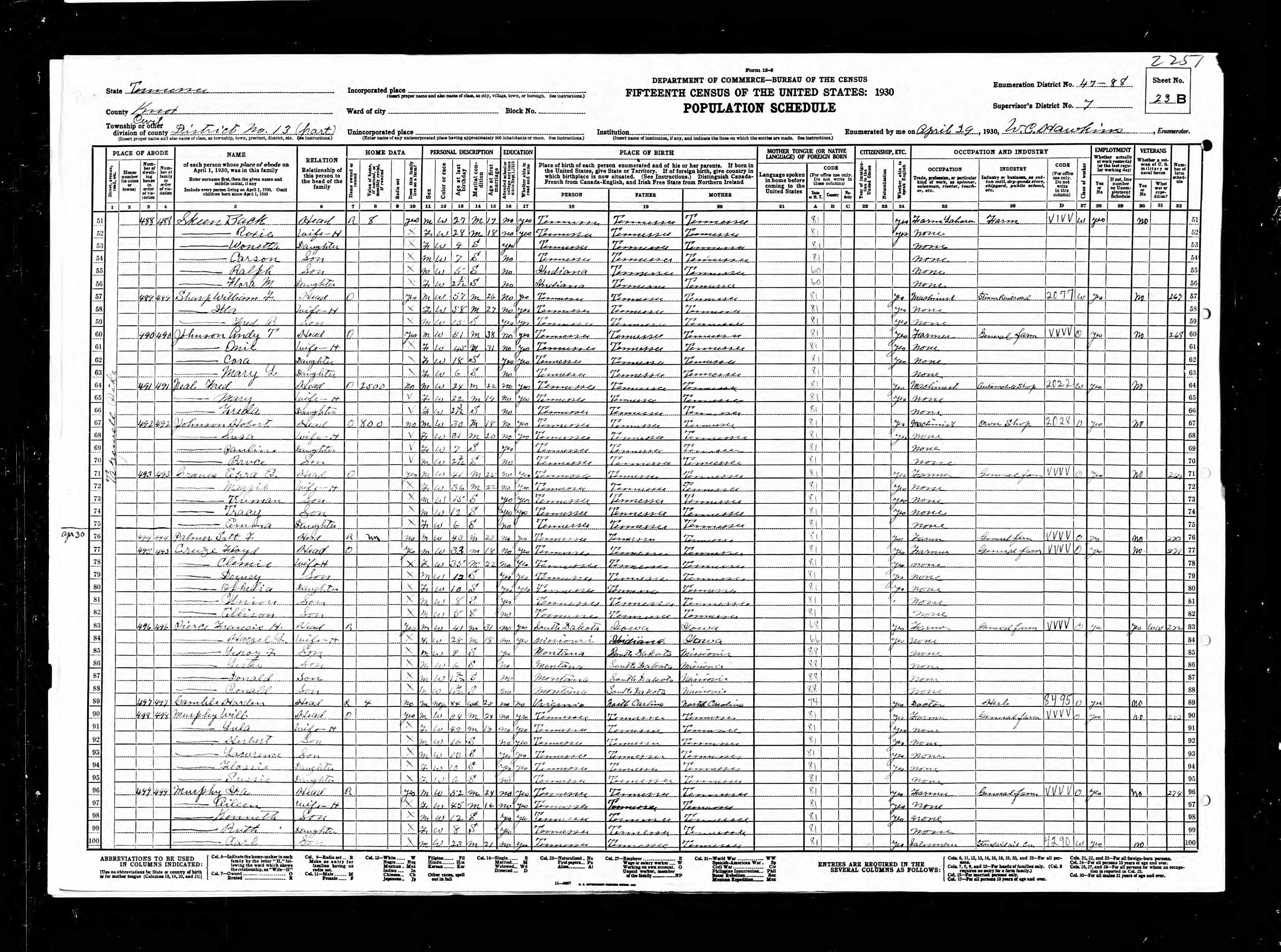 Dist. 13, Enumeration District 47-88, Knox County, Tennessee, 19 Apr 1930