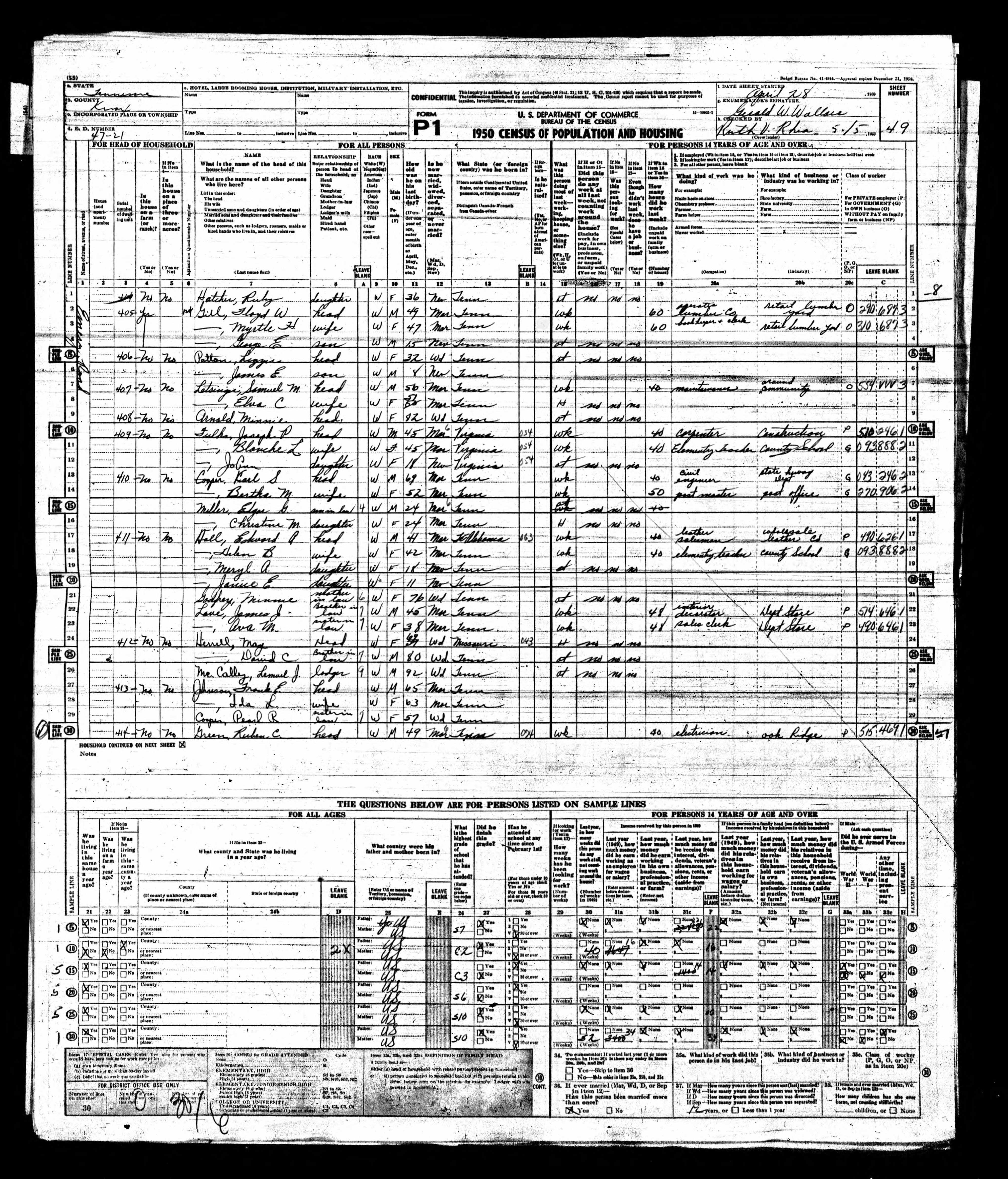 Enumeration District 47-21, Knox County, Tennessee, 10 Apr 1950, sheet 049