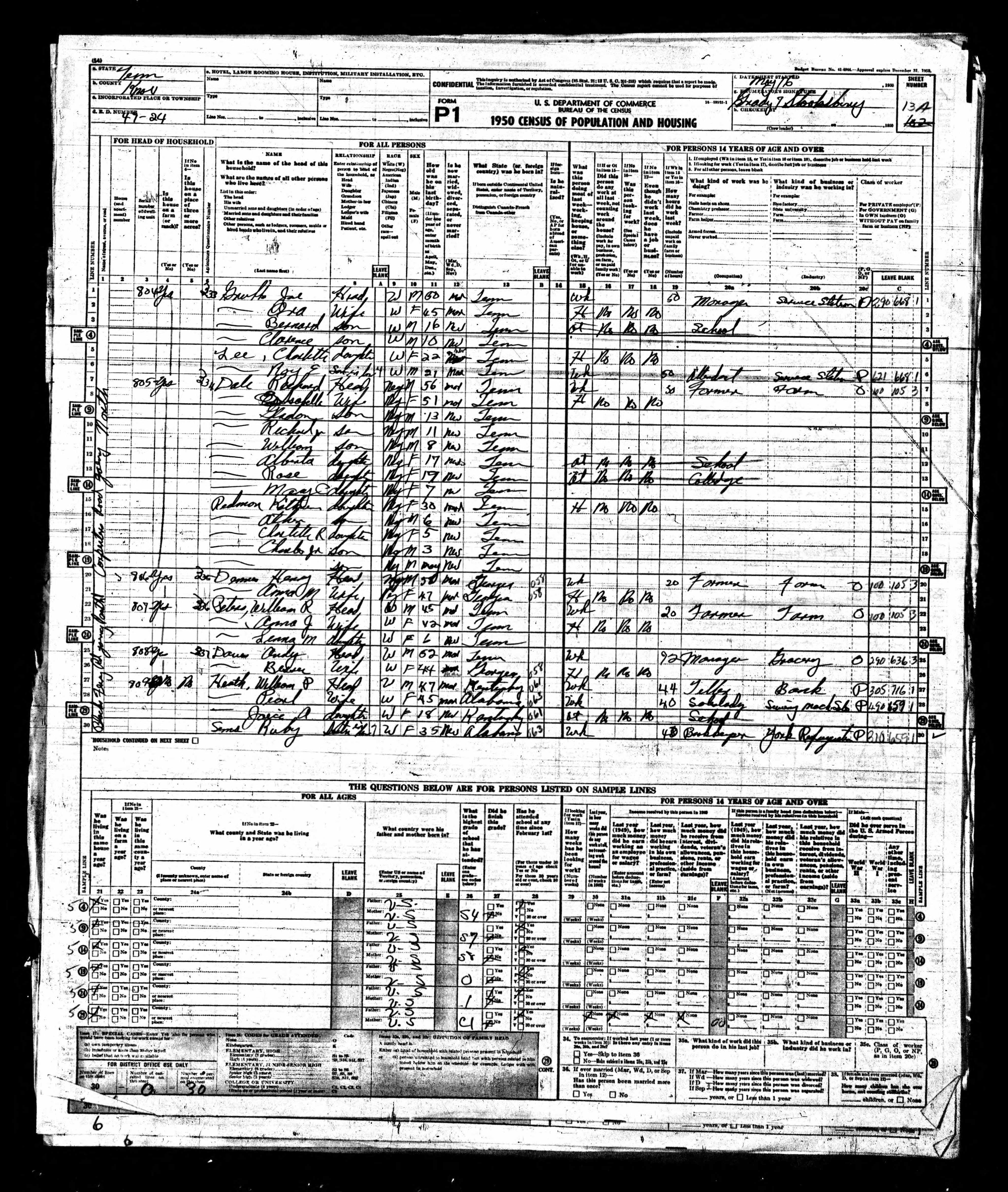 Enumeration District 47-63, Knox County, Tennessee, 24 Apr 1950, sheet 034