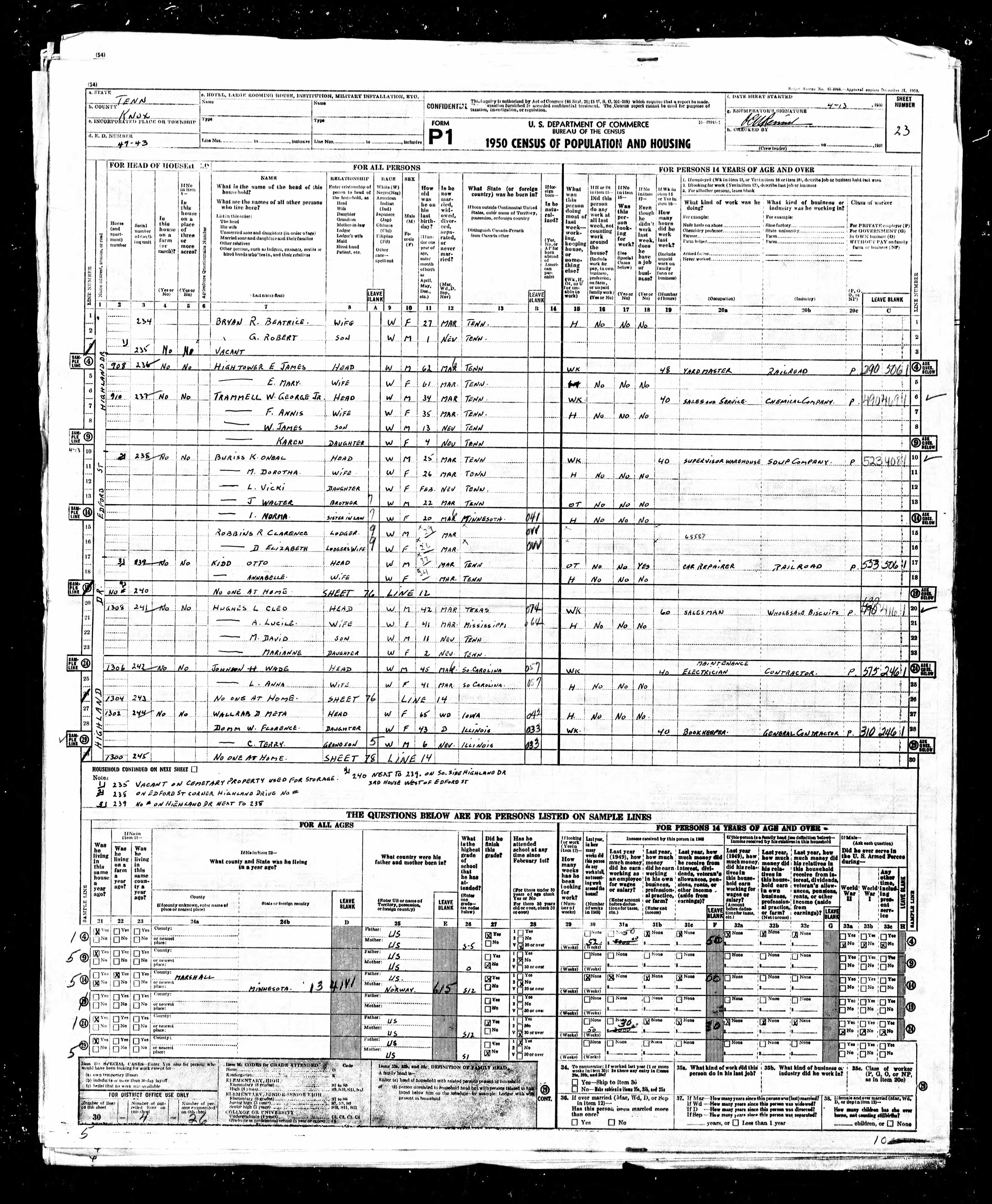 1950 U.S. Census, Knox County, TennesseeEnumeration District 47-43, sheets 022 and 023 |