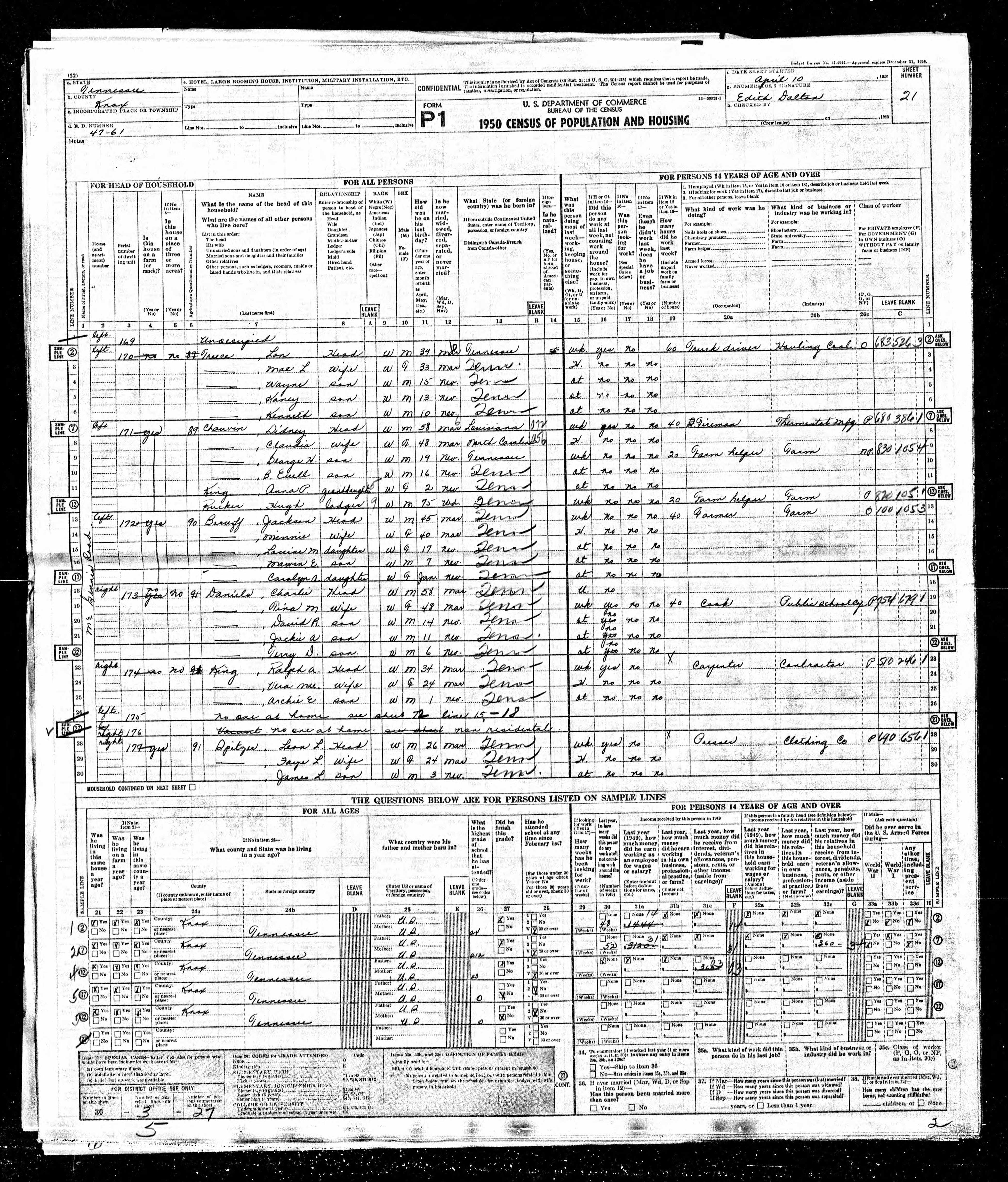 1950 U.S. Census, Knox County, TennesseeEnumeration District 47-21, Knox County, Tennessee |