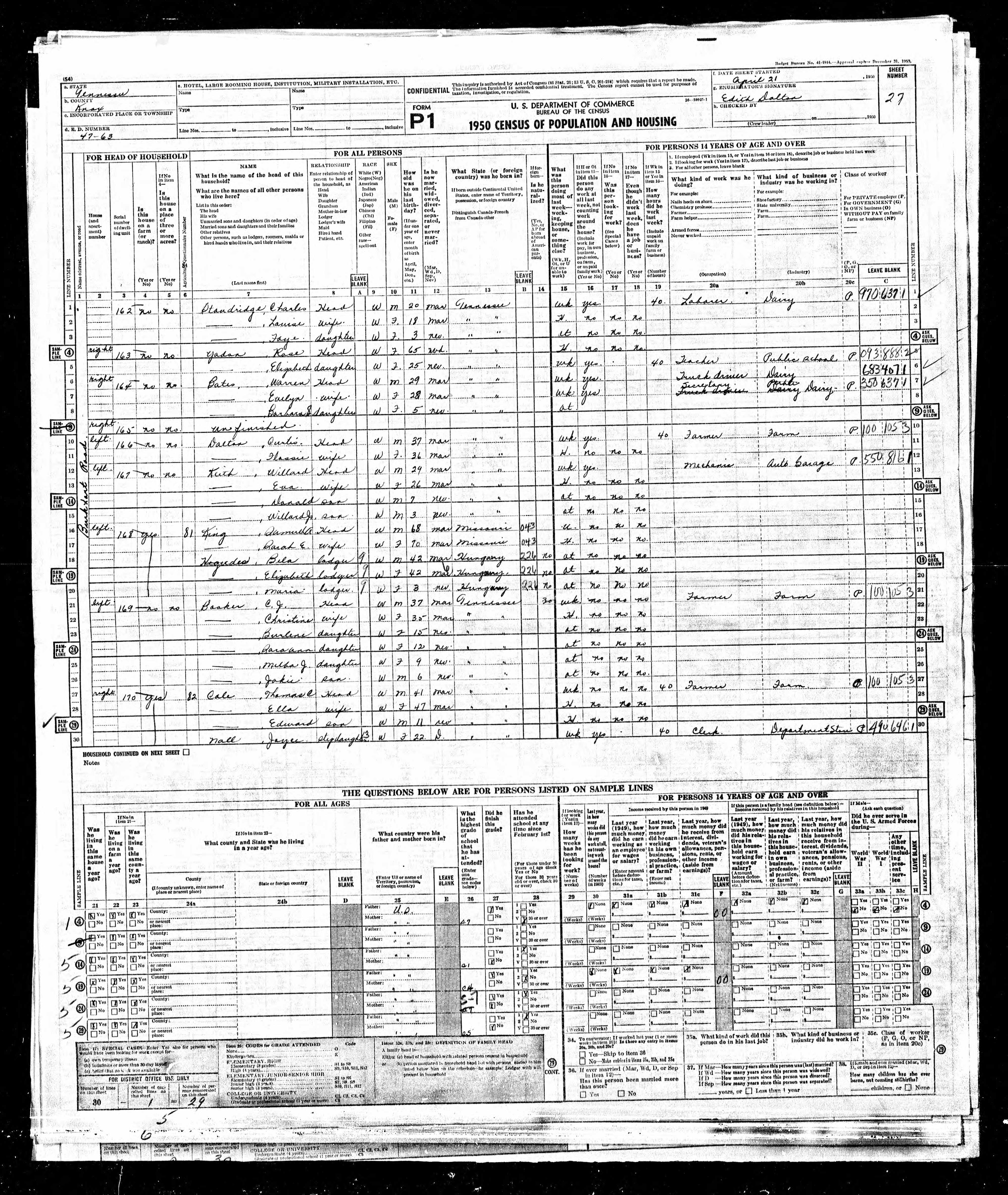 Enumeration District 47-63, Knox County, Tennessee, 27 Apr 1950, sheet 048