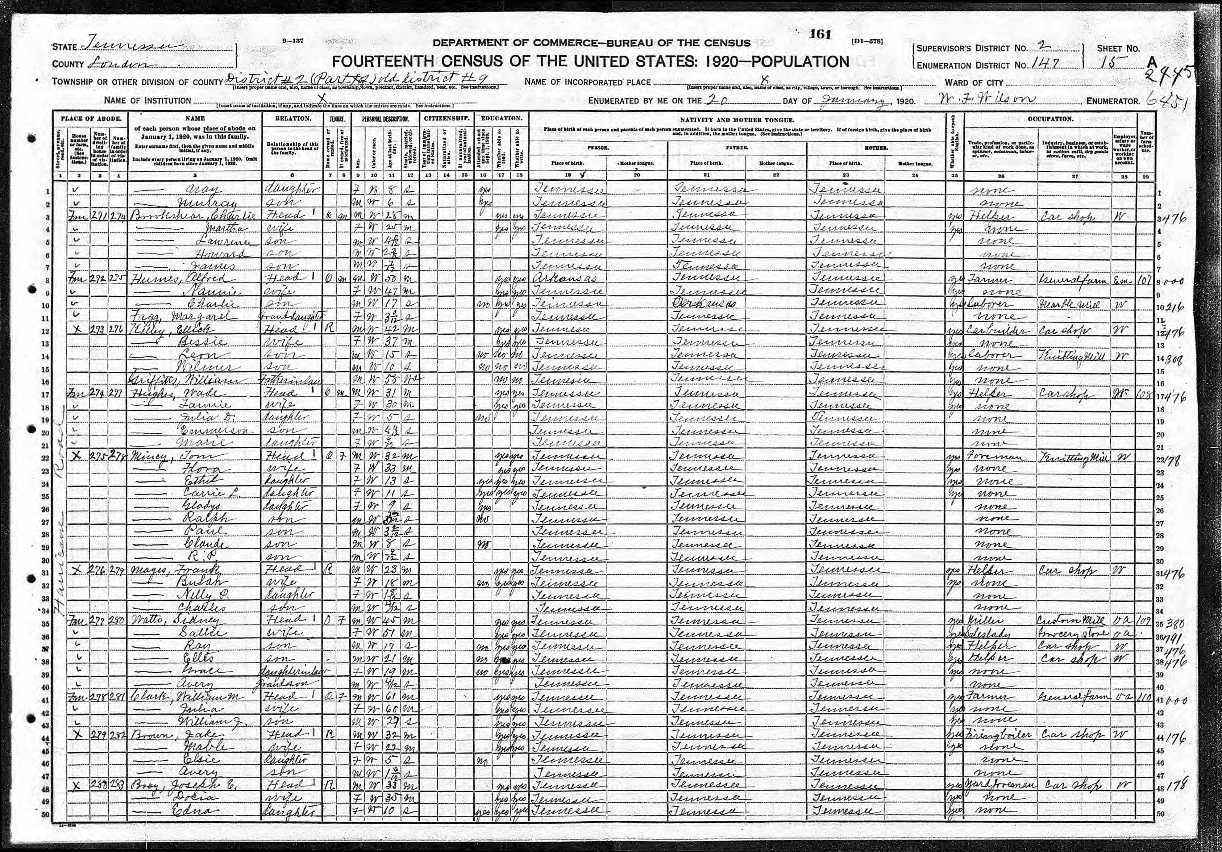 Enumeration District 149, Lenoir City, Loudon County, Tennessee, 17 Jan 1920
