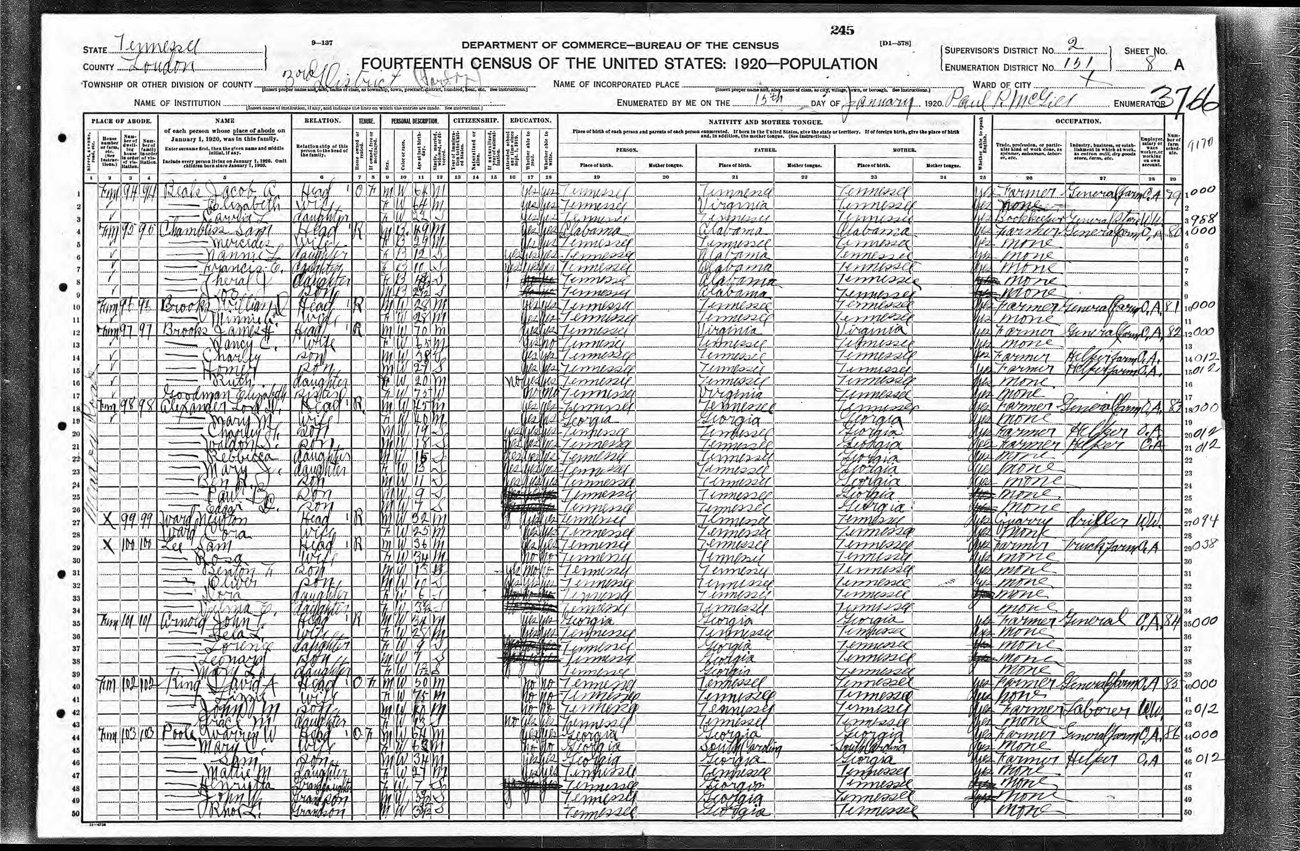 1920, Dist. 3, Enumeration District 151, Loudon County, Tennessee, page 245a |